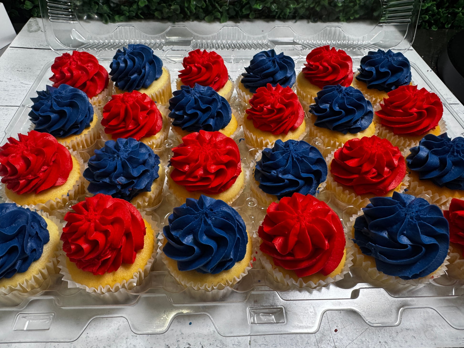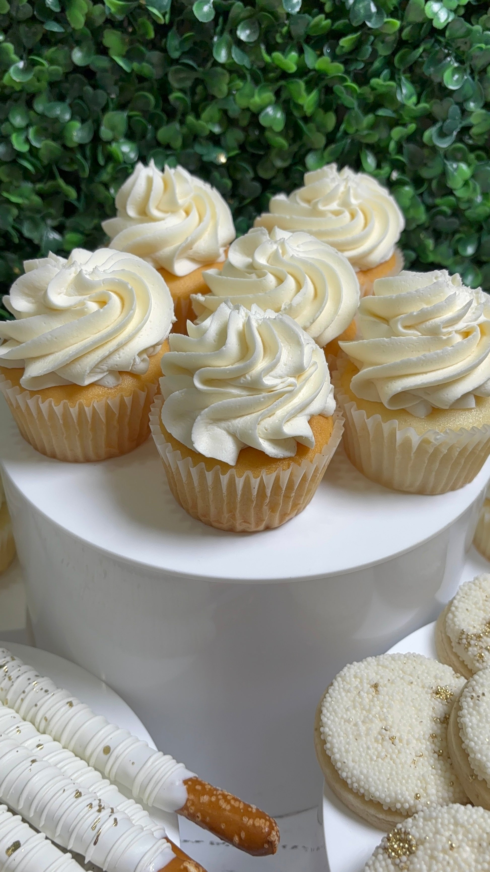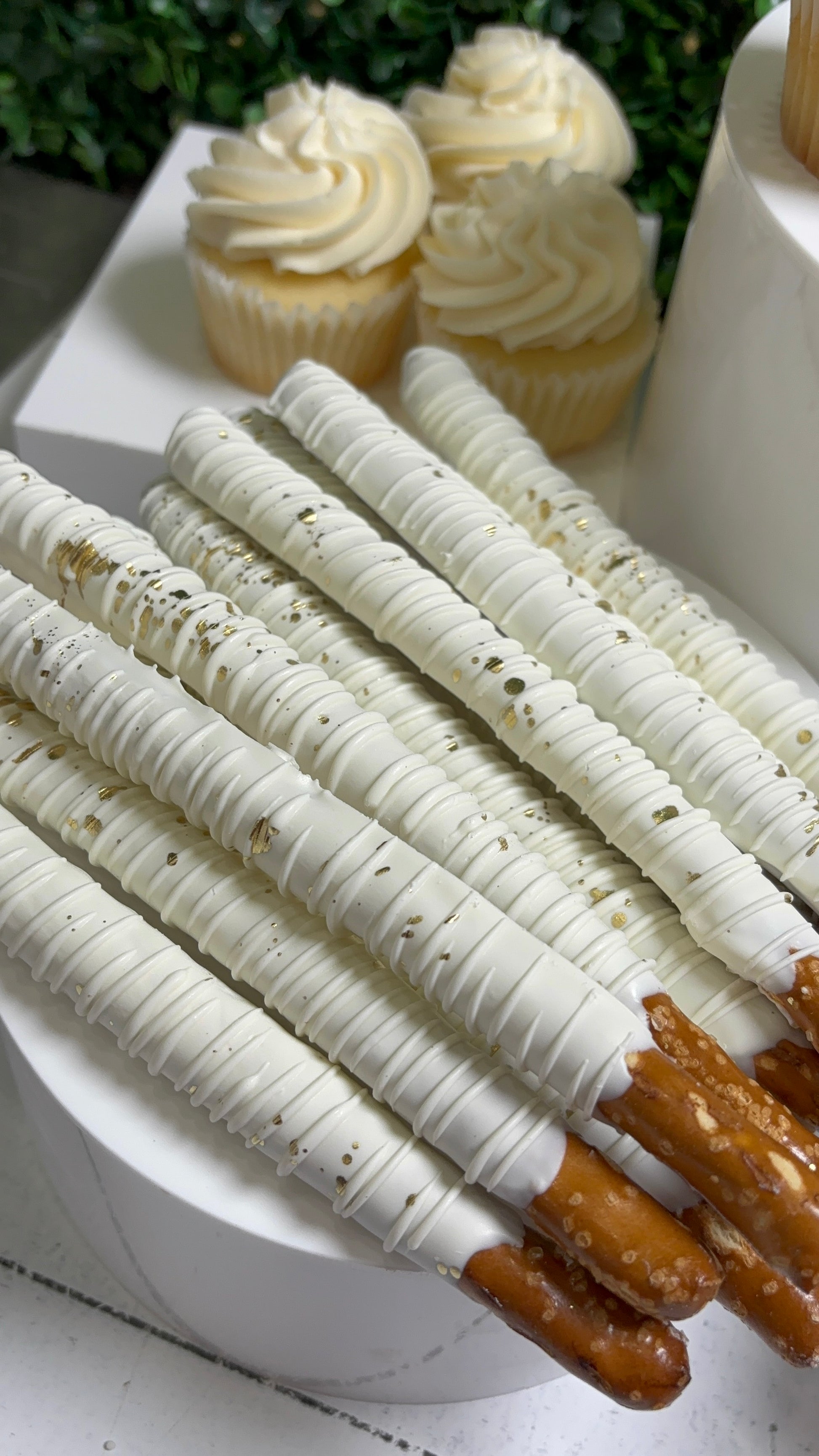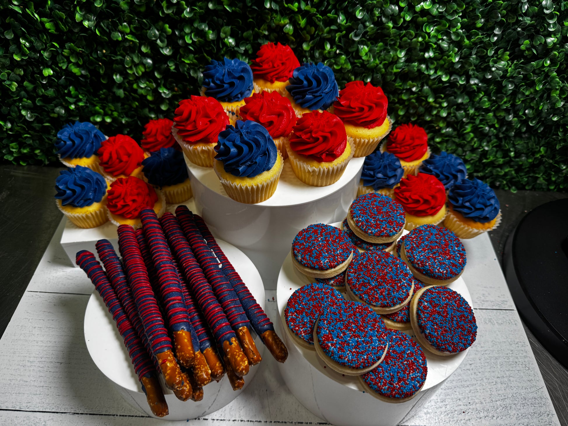 Treat bundles includes: 24 standard cupcakes, 12 mini sugar cookies with sprinkles and 12 Chocolate Dipped Pretzel rods.