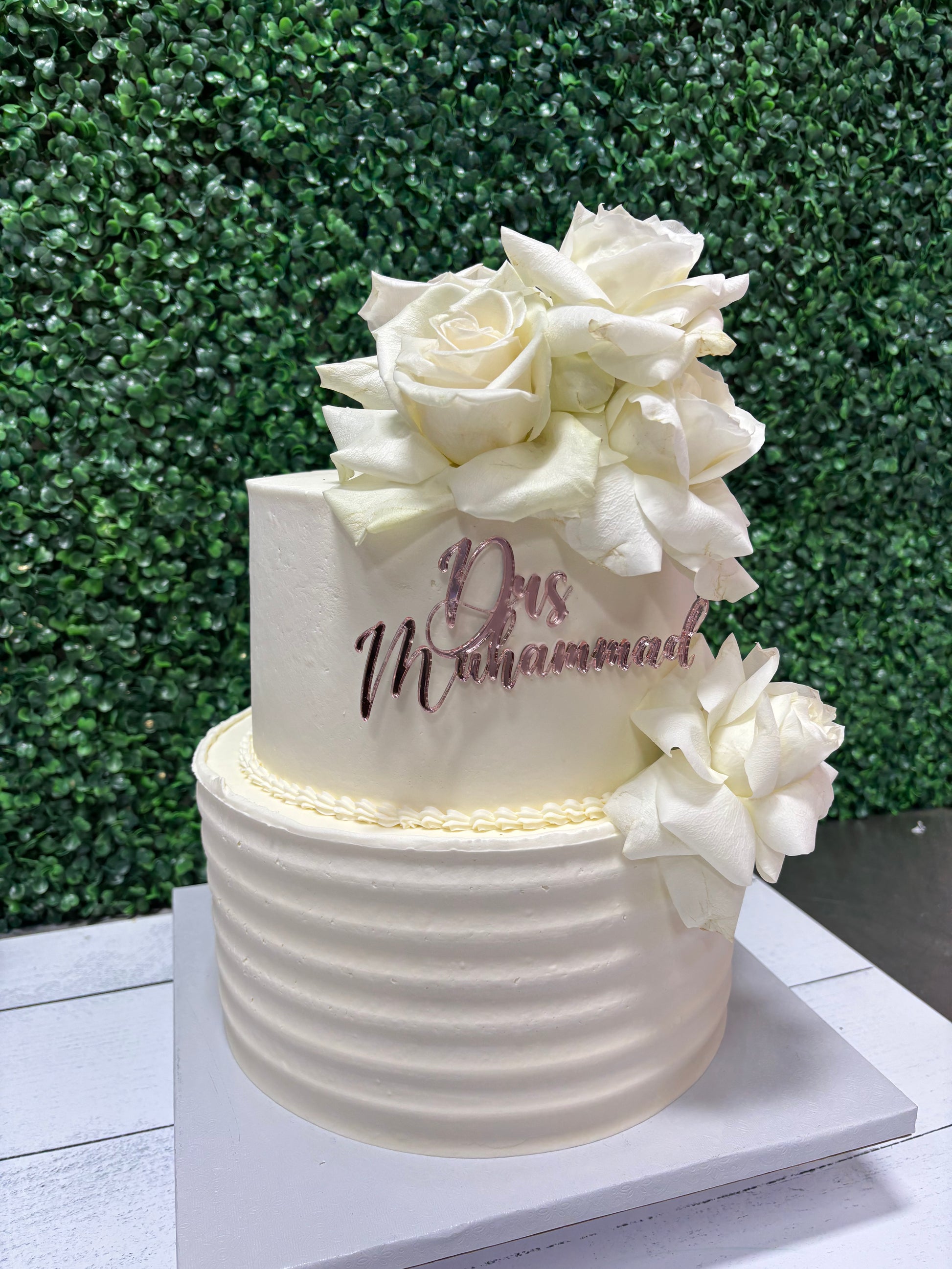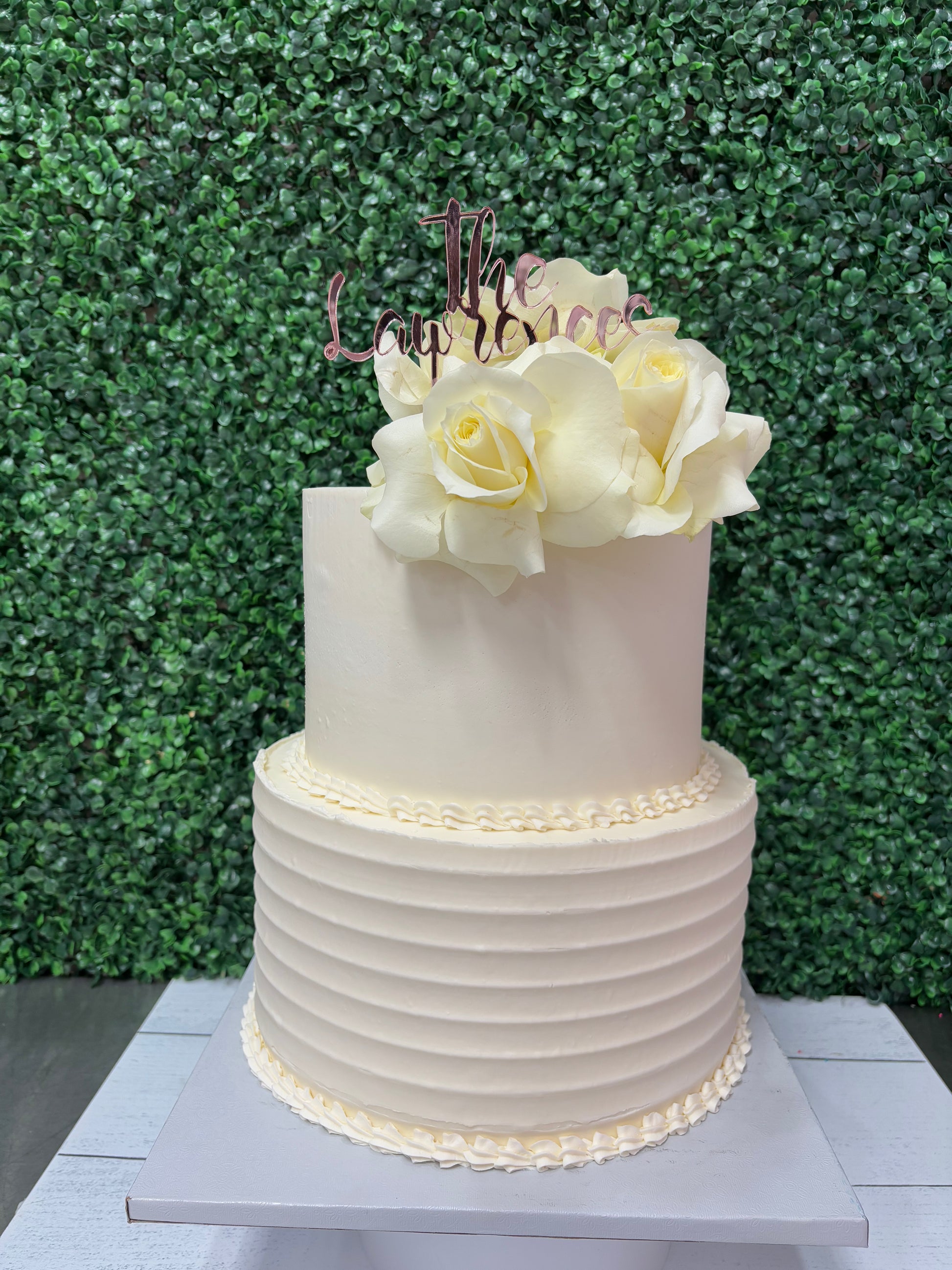 2 tier wedding cake. Flowers and acrylic are not included in price but can be added