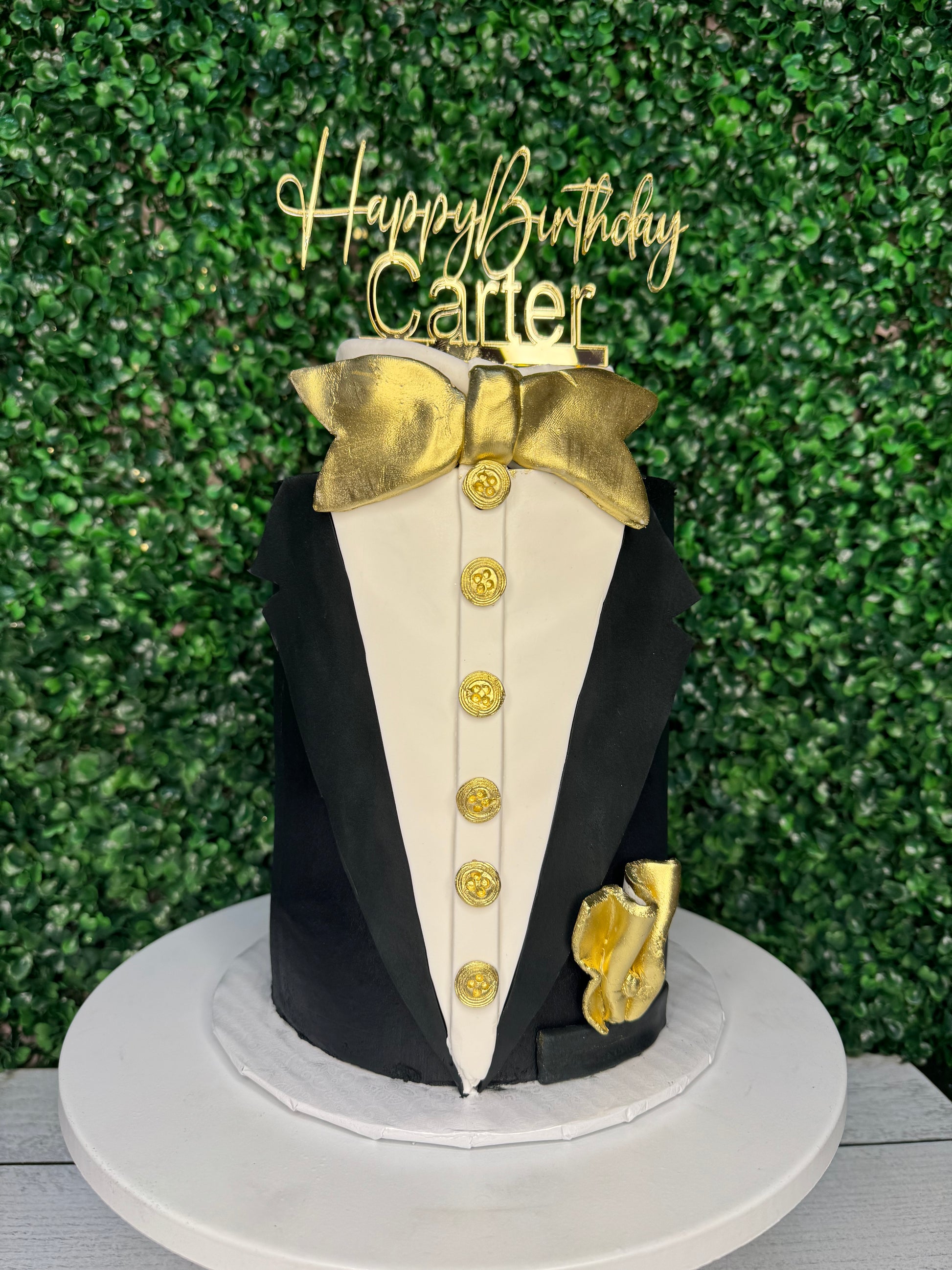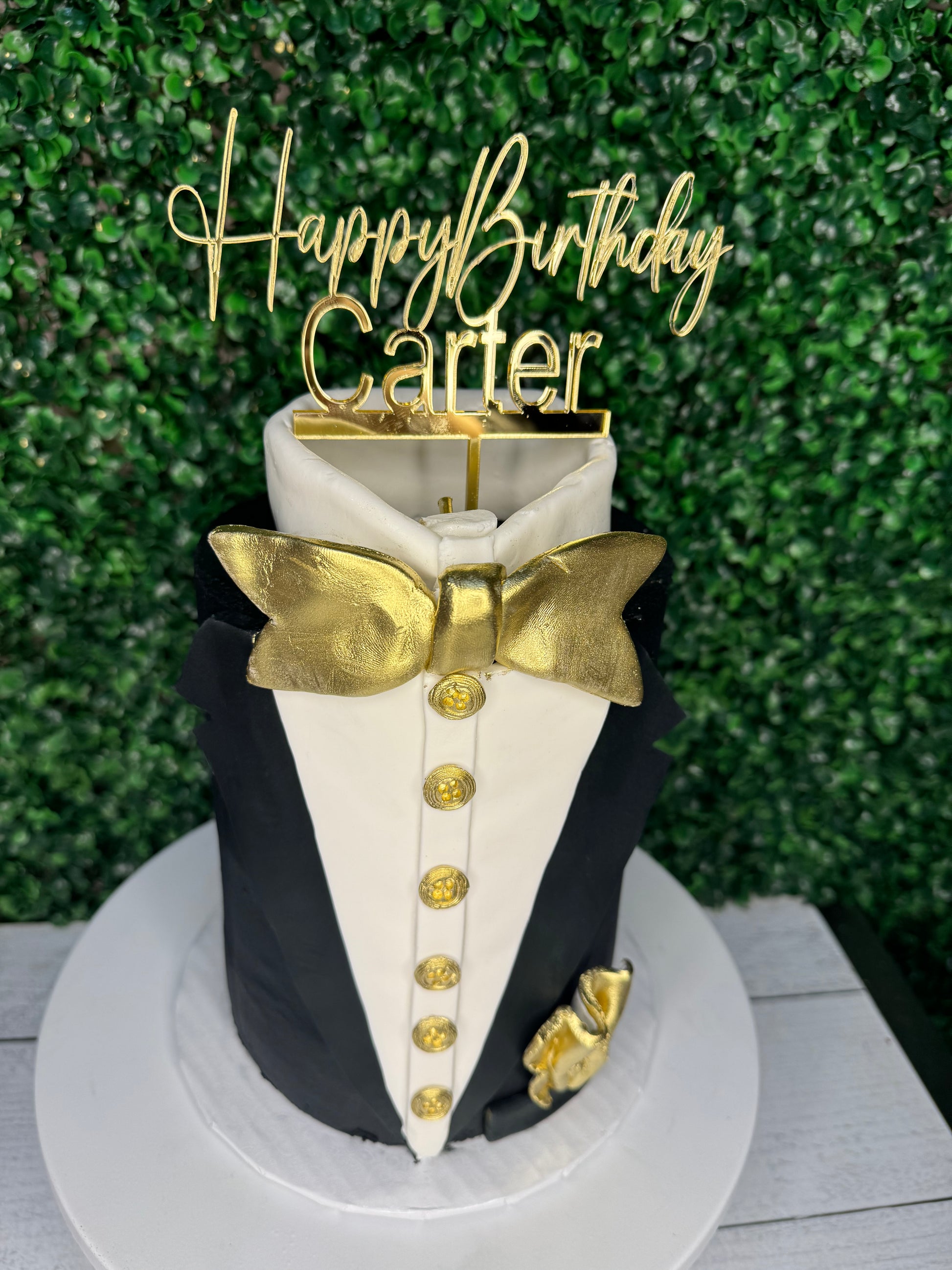 Suite & Tie inspired. Tall 3 layer cake. Cake topper not included