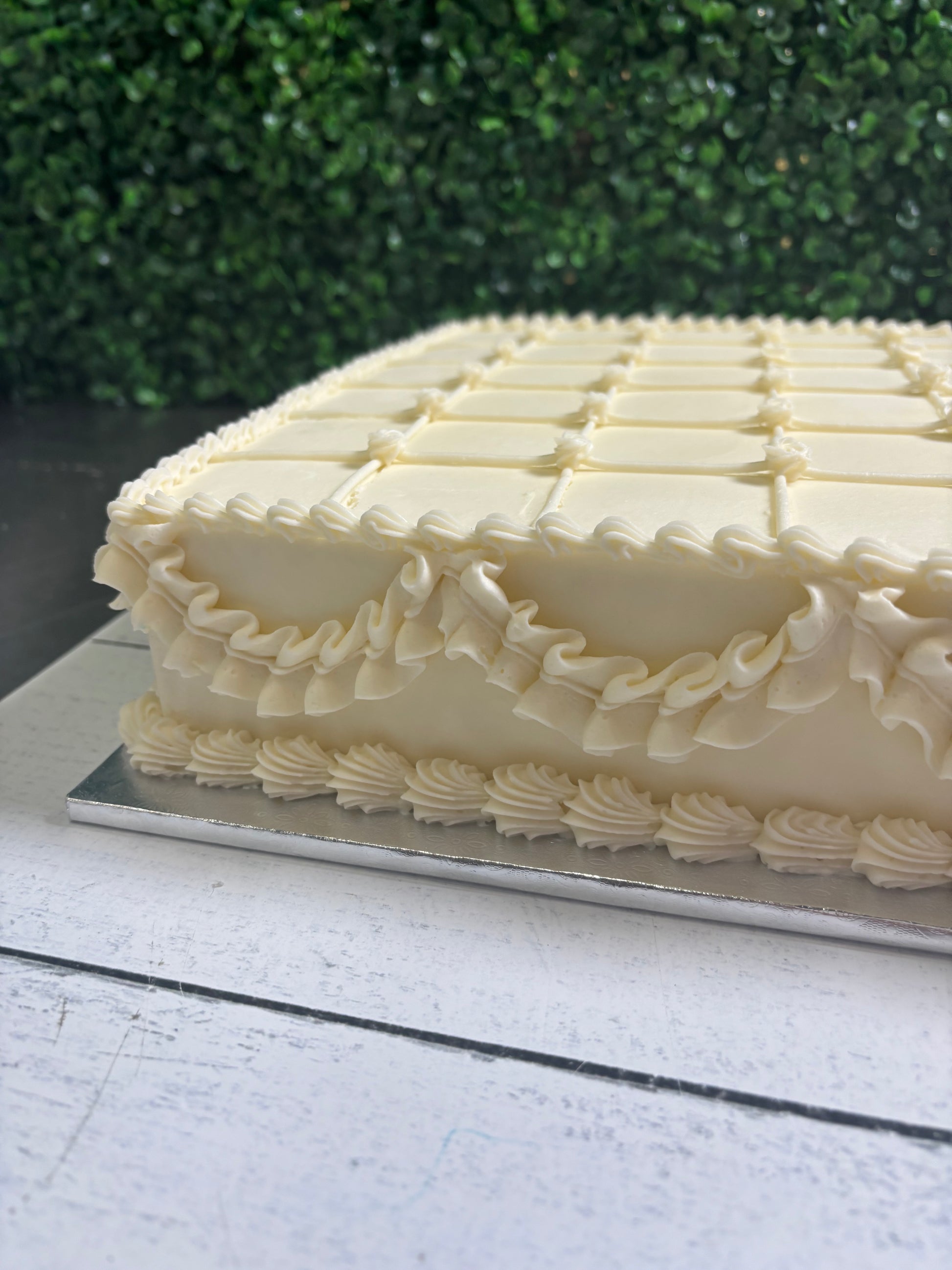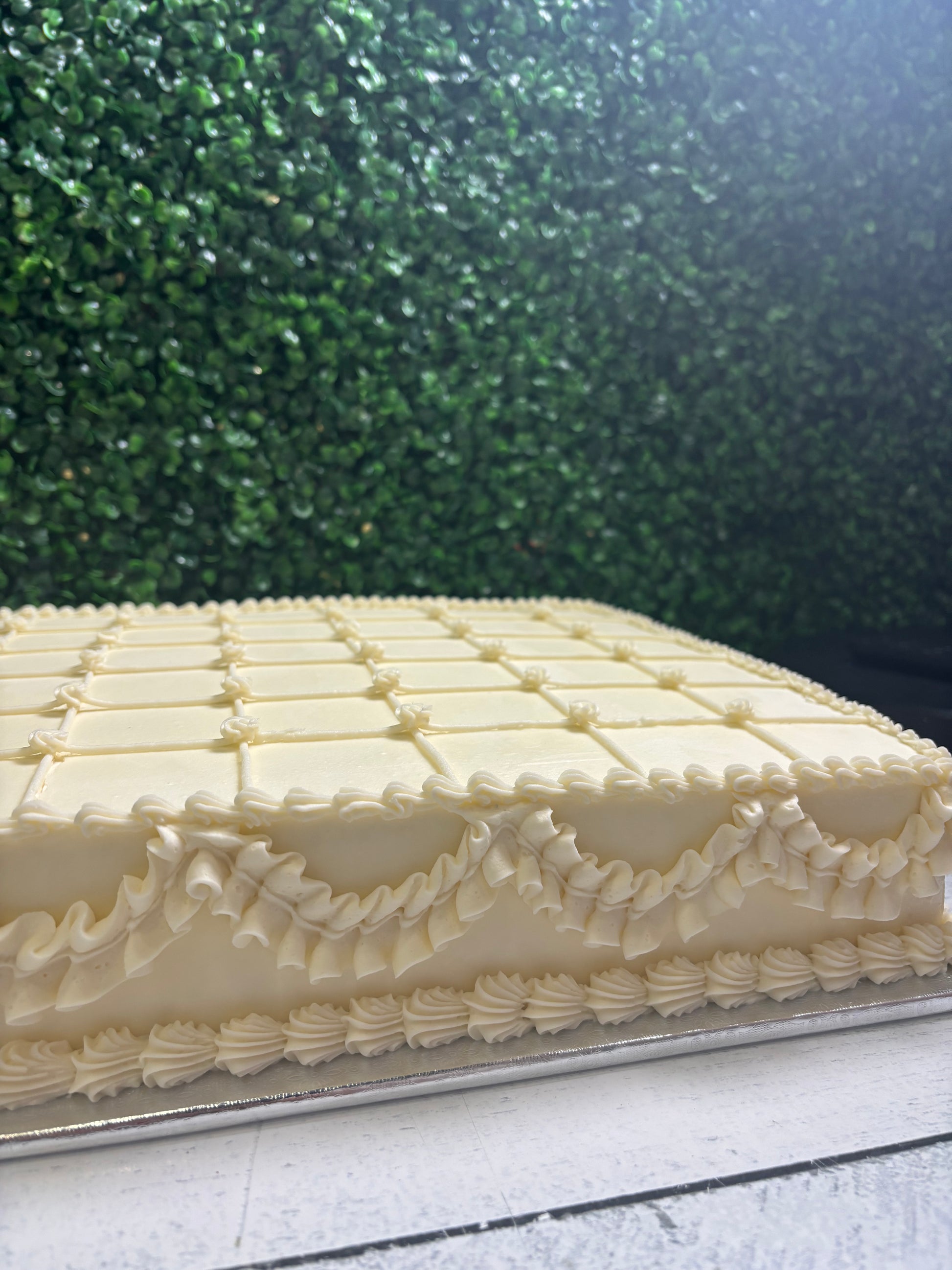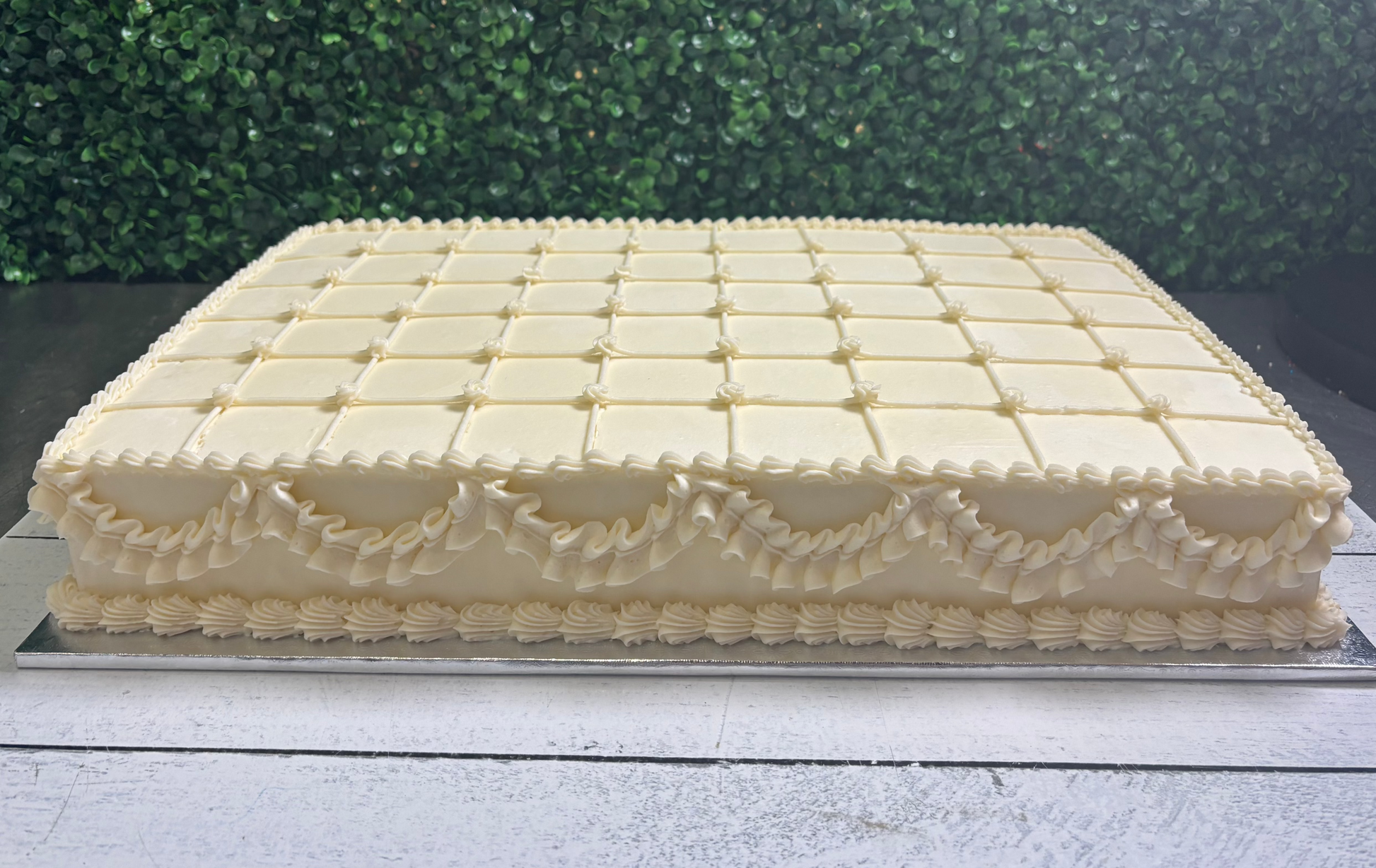 Our Wedding Day Sheet Cake is designed with both elegance and practicality in mind. Each cake comes pre-marked with clean, subtle cut lines, making catering effortless and ensuring every guest receives a perfectly portioned slice.