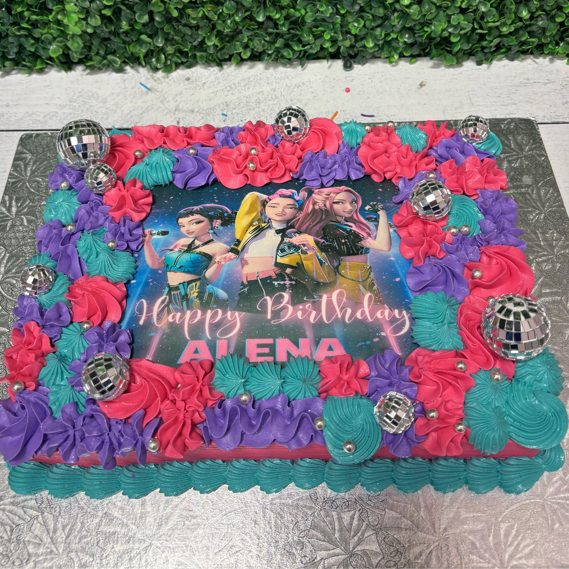 Our **Character themed** sheet cakes are personalized with your chosen image or theme, printed directly onto an edible icing sheet.